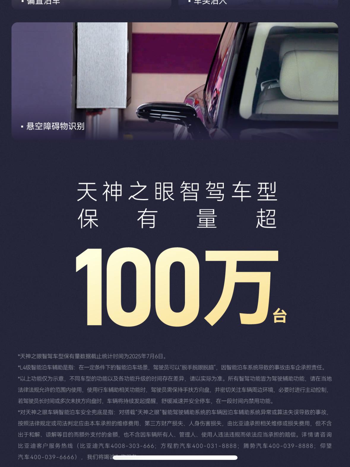 智驾圈地震级新闻!比亚迪刚甩出王炸!自动泊车出事?4S店直赔!不走保险! L4级智驾核心就是责任转移,比亚迪在泊车赛道直接封神颠覆行业的三重暴击! - ✅【兜底承诺】天神之眼泊车失误 修车钱比亚迪掏+保费0上涨 ✅ 【泊车天花板】三速泊车+车头直入+窄位自动收镜,实测连魔鬼车位都丝滑拿下! ✅ 【史诗级OTA】行车/泊车/安全三大升级 环岛连续绕行+窄路掉头+加塞闪灯鸣笛,深夜80km/h刹停乱窜电驴,20km/h舒适急刹(奶茶不洒!)低矮障碍也能精准识别 ! - 中国zui大智驾数据库一万工程师天团,超100万车主共同验证 ✅ 总结闭眼入理由: 泊车翻车→车企买单→保费锁死 驾校教练级泊车神技 夜间AEB安全感爆表 百万车主大数据越用越聪明