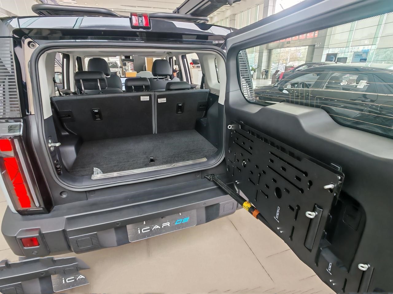 后备箱可以说有好有坏,不打开后备箱前还有个箱子可以打开放东西, 好的地方是越野suv那种开后备箱方式无敌 后备箱门那里还可以在商店加装铁桌子固定在后备箱门那里
