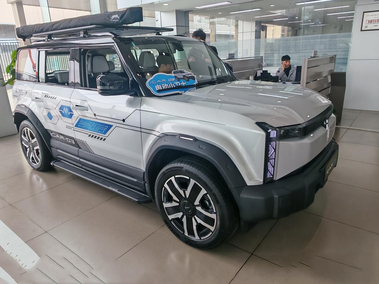 车身轮胎很高,过啥凹凸不平的地面都妥妥的 车身造型很帅,前提是加装车顶架,不然显的车顶很平很小