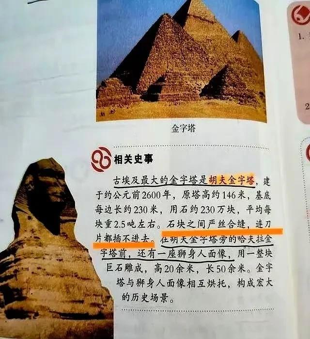 实际上教科书摘抄的应该是埃及旅游广告,而且墓室里面的确是一片剃须刀都插不进去,至于第一张图里面那更是金字塔没了外壳以后的样子。