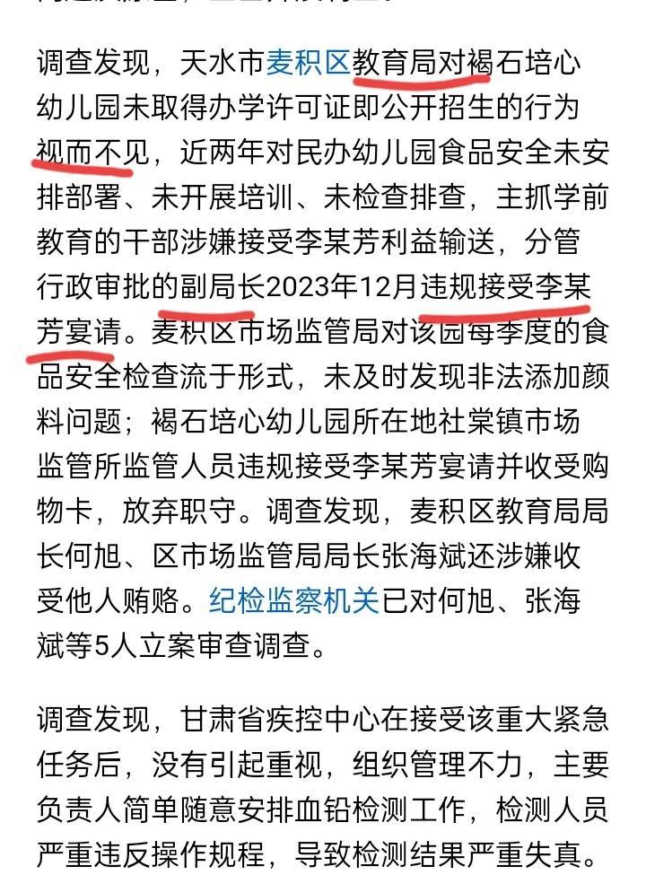 幼儿园血铅事件越查牵扯越大。本来以为只是幼儿园的个人行为,最多查处几个人,万万没想到,背后还有“保护伞”,真是“以为毁了一个柱子,却塌了一整个建筑”,这是根毁了啊! 我这人还是太单纯了,看问题不够深入。幼儿园铅中毒的时候,我简单的骂幼儿园老板,认为这是他的过错,可是看了调查才发现,任何有利益牵扯的事情,都不是一个人,或者两个人,能够做成功的,这后面一定会有很多的人,真的太可怕了。