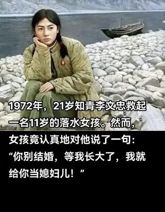 1972年,21岁知青李文忠救起一名11岁的落水女孩。然而,女孩竟认真地对他说了一句:“你别结婚,等我长大了,我就给你当媳妇儿!”