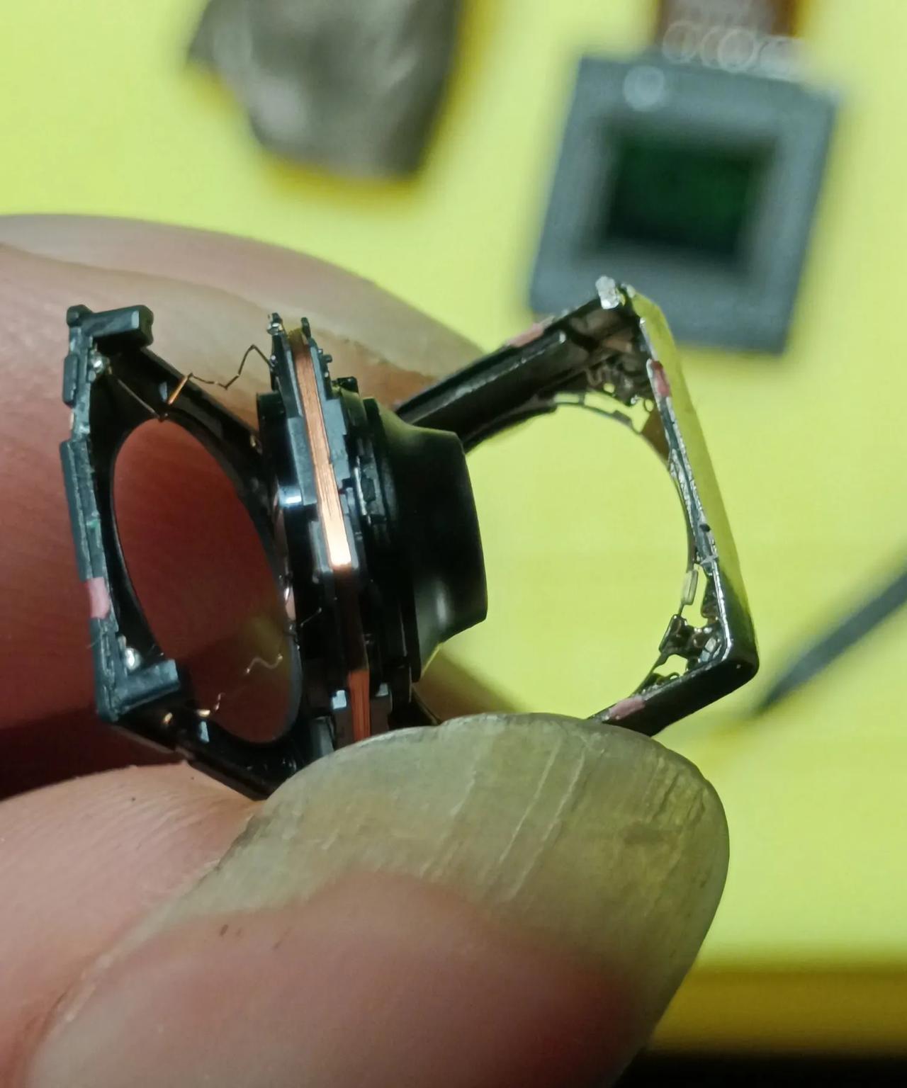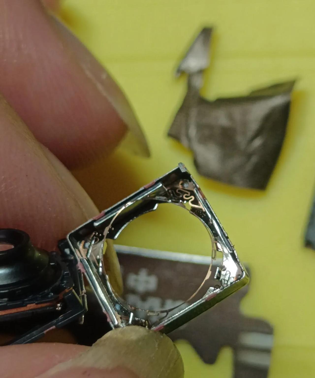 今天来拆解一个手机摄像头,发现原来摄像头是由5个凹凸镜组成,每个凹凸镜大小不一样