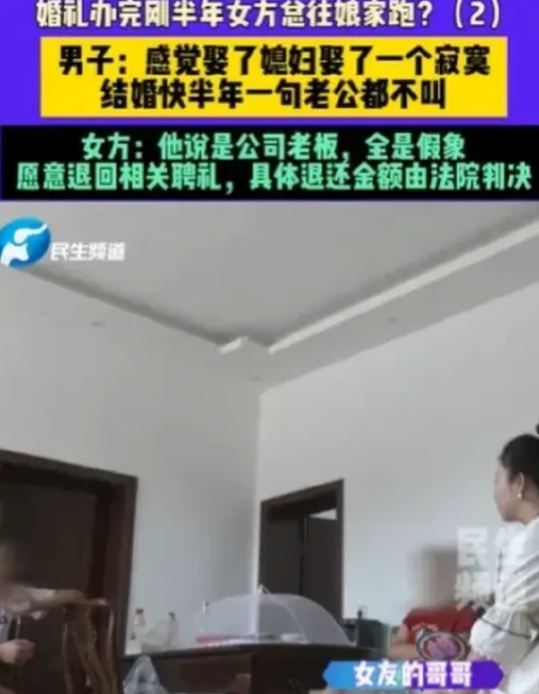 河南新乡,魏先生经人介绍与妻子结婚,为表诚意,他给出101000元现金、128000元彩礼及五金。可婚后妻子行为奇葩,结婚半年不领证,有钱才回家,还要求分魏先生挣的钱,半年未喊“老公”。妻子则称魏先生结婚前装大款骗她。魏先生忍无可忍提出退婚退钱,双方同意走法律途径。