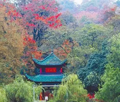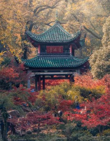 以前对毛主席《沁园春•长沙》中的“层林尽染”这个词是抽象化的。 直到看到与他关系颇有渊源的岳麓山爱晚亭风景图。 这一刻真是具象化了。