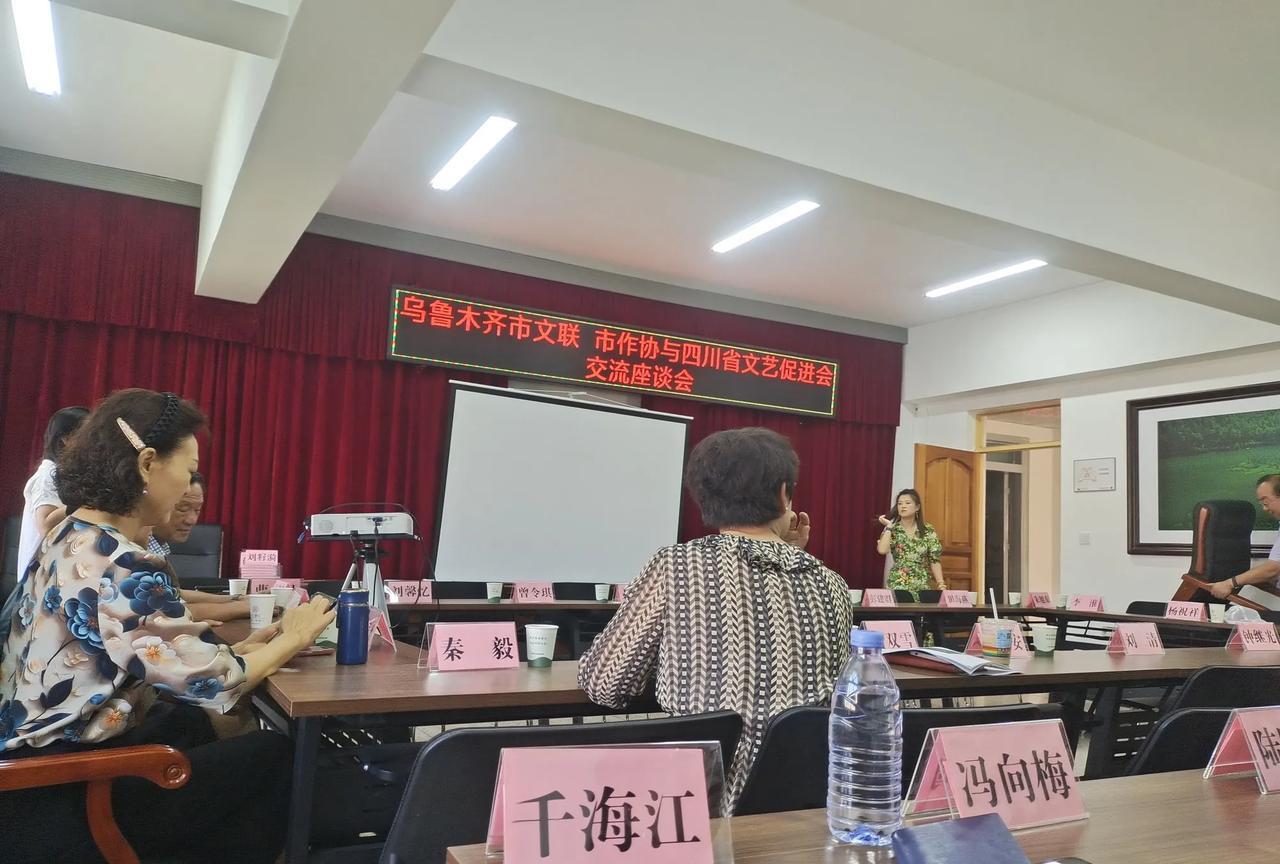 7月21日上午10点30分,在乌鲁木齐市文联5楼会议室,乌鲁木齐市作协与四川散文