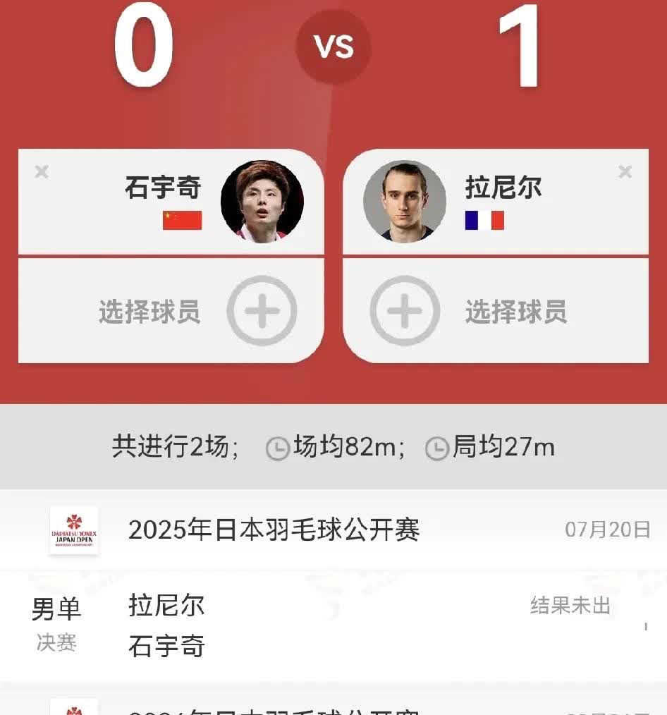 石宇奇和拉尼尔还真是缘分不浅,两个人之前仅有的一次交手记录也是在去年的日本公开赛,当时半决赛石宇奇先赢后输被拉尼尔战胜,而且拉尼尔最后还拿下了男单冠军,成为日本羽毛球公开赛最年轻的男单冠军,没想到时隔一年两个人又在日本公开赛相遇了,只是这次是决赛,对于拉尼尔来说是卫冕,对于石宇奇来说是复仇,希望石宇奇可以报一箭之仇。聊热点