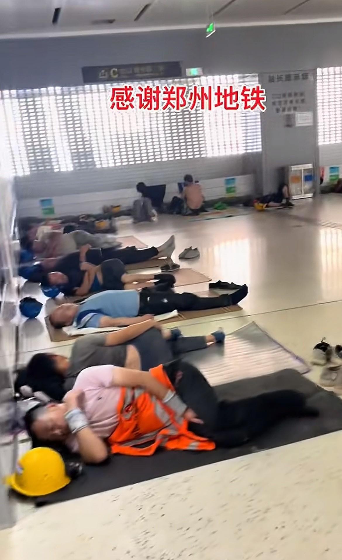 被郑州地铁感动了!因为郑州地铁不叫他们农民工,而是叫他们建设者,这是对农民工最大的尊重! 最近郑州四十多度的天气,地铁站成为市民们避暑纳凉的“清凉港湾”,郑州地铁有很多专门设置的纳凉点,向所有市民免费开放,而且郑州地铁站还专门有给农民工设置的纳凉点,只是在农民工纳凉点的牌子上,并没有写着农民工或打工人,而是亲切的写着“建设者休息区”,在“建设者休息区”看到很多农民工都是席地而眠,这一幕让人特别的感动! 感谢郑州地铁能为这些远离家乡来郑州打工的人考虑!为郑州地铁点赞,这才是城市该有的样子! #分享城市新鲜事#