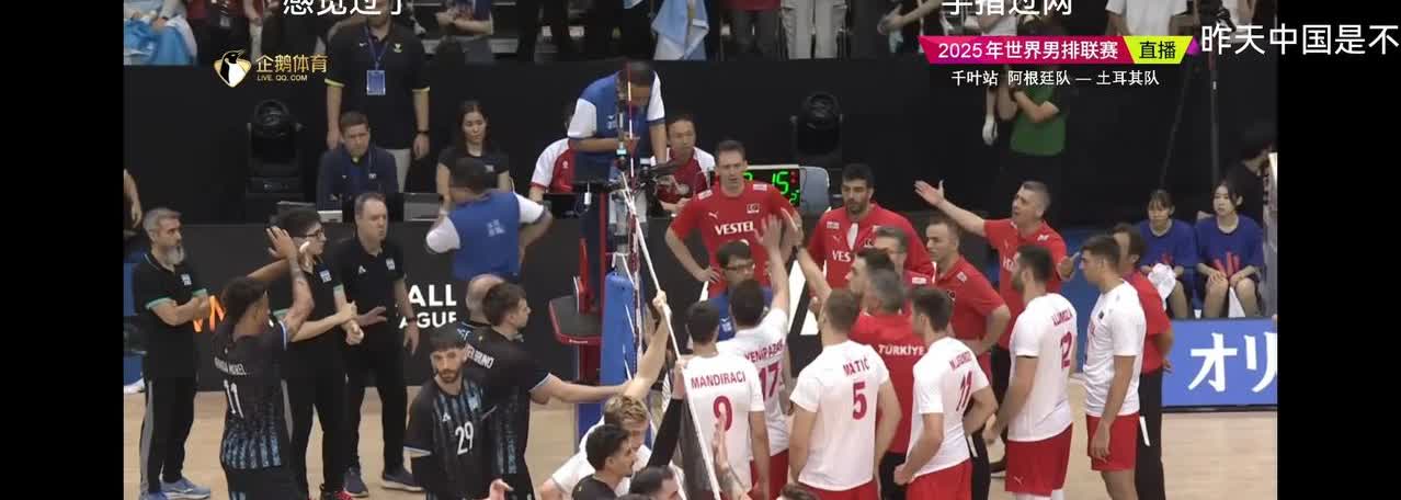太搞笑了!阿根廷男排决胜局17-15获胜,等着握手,土耳其男排不干了[不看] 土耳其男排对裁判判的过网击球有异议,土耳其教练和队员们围着裁判一通群聊啊,喋喋不休,裁判迟迟不能吹哨结束比赛,土耳其男排和裁判谈心时间那叫一个长啊,都快能打完再一个决胜局时间了[大笑] ◆世联赛收官比赛,阿根廷男排赢的也是真惊险。 前三局阿根廷男排2-1领先,第四局不知怎么回事就松懈了,比赛被土耳其男排拖入决胜局! ◆决胜局开局后土耳其男排领先,阿根廷男排慢慢追比分,13平后,土耳其男排发球连续失误送给对方局点[不看] ◆阿根廷男排也没珍惜不劳而获的局点,一次次不下分,比分在16-15时,裁判判土耳其男排得分16平,阿根廷男排发起挑战,认为对方过网击球,见图二。 ◆裁判改判土耳其男排过网击球,阿根廷男排17-15获胜。 然后就进入了土耳其男排教练和队员与裁判矫情的漫长时间,见图三、图四、图五。真担心裁判下来被土耳其男排围攻[不看] 土耳其男排在握手时还意难平,边握手还边和阿根廷队员磨叨着,见图七图八[大笑] ❔不知道阿根廷男排这场球赢后,晋级八强了没有啊?