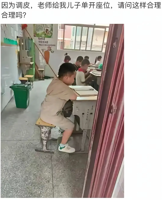 我儿子也是上课容易分心,喜欢跟同学聊天。老师给他单独开一个讲台边的位置,我们一点都没怨言,还感谢老师处罚他。如果老师对这不理不睬才是我们害怕的。这样能维持上课秩序,还能让我家孩子更有机会改变坏习惯,何乐而不为呢?
