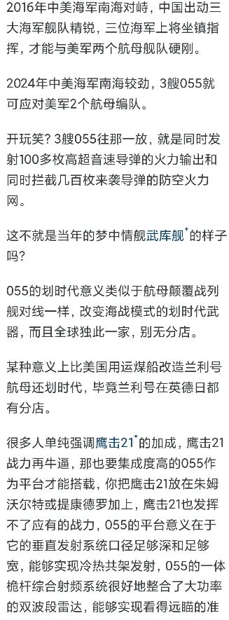 如果考虑舰载超音速反舰弹道导弹这个子系统,其他家合一起现在也攒不出055。 随着军事装备高科技含量越来越高,以前的所谓军事大国们纷纷都跟不上了。