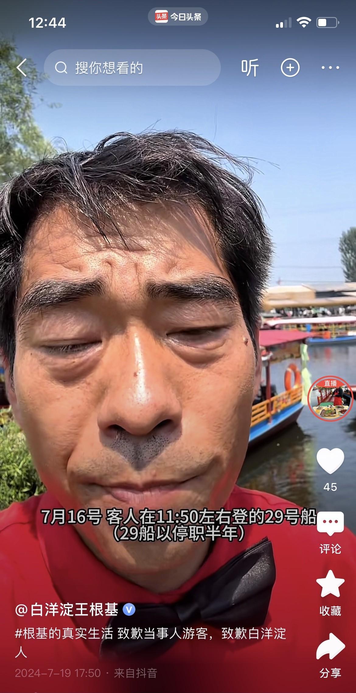 白洋淀景区游船管理员喊话网友。扎胎,堵路发生之后游客明显变少,希望全国网友给个改