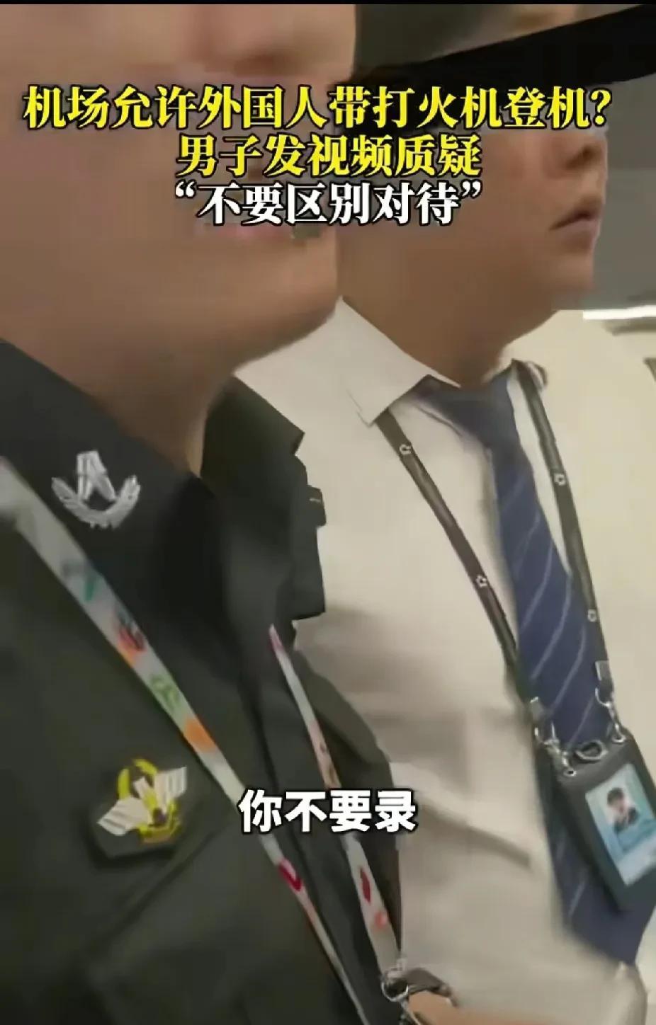 男子质疑老外可以带打火机登机,机场让男子不要录像,有网友说大惊小怪国外可以带打火