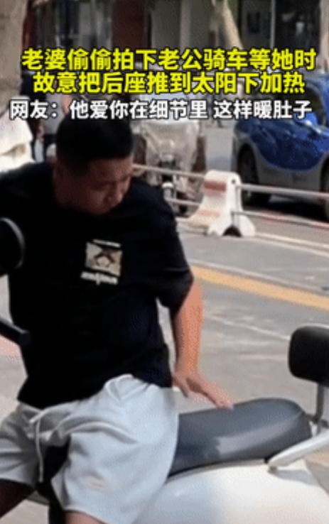 一开始,妻子还疑惑他为什么突然要移动电动车,直到看到他伸手摸后座,再看到他那得意的表情,瞬间就明白了他的小心思,这是想让自己坐烫屁股啊。