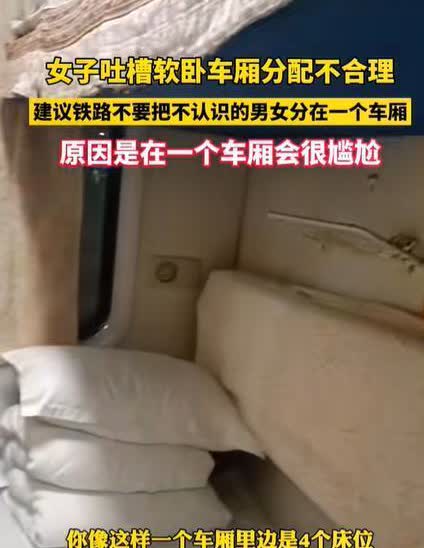 “你买的是卧铺,不是卧室”2023年,一女子去太原坐火车买的卧铺票,上车后发现4个铺位已有2位是男性,还有一个铺位不知是男是女,给她造成了极大不便! 2023年,有个姑娘坐火车去太原,特意买了软卧票,想着路上能有个安静舒服的地方歇歇。可上了车才发现,自己的卧铺包厢里已经有俩男士了,还有一个铺位不知道会是谁,这让她特别别扭和尴尬。 她就把这事儿发到了网上,一下子引起了好多人的讨论。姑娘说,她也不是不愿意和异性待一块儿,但在那么小个空间里,跟不认识的异性待久了,心里确实不舒服,也有点儿害怕。她就希望铁路部门卖票时能看看性别,尽量把男女乘客分开安排,这样大家坐车也能更自在,更安全。 其实,这已经不是第一次有人提这样的建议了。以前也有乘客反映过这个问题,12306客服说卧铺车厢是大家共用的地方,没法按性别分,建议有需要的乘客换别的车次或者交通工具。可网友们觉得,这种说法就像是推卸责任,没真正解决乘客的难题。现在社会里,女孩子们越来越重视安全和隐私了。晚上坐长途火车,选卧铺的话,因为环境封闭,大家心里总会有点担心。铁路部门虽然有很多难题要解决,比如技术、资金,还有公平对待每个人之类的,但在服务上,他们还能做得更好些。 这次的事情虽然没让规定立马就变了,但它让大家都开始留意旅途中性别和隐私的事情了。可能,这只是个开头呢。