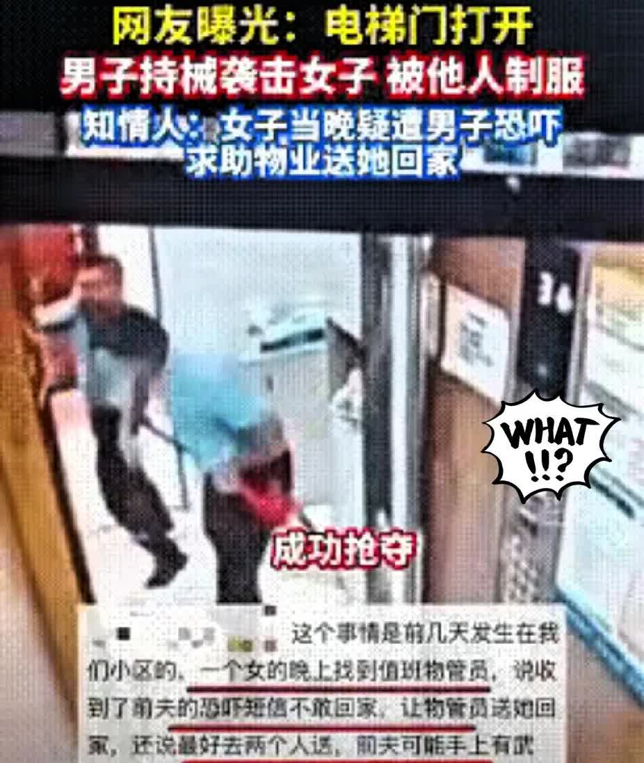太惊险了!江苏一女子因前夫发恐吓短信不敢独自回家,向物业求助,两名物业人员陪她乘电梯上楼。没想到电梯门一开,前夫竟抡着大锤砸来,物业小哥反应神速,冲上去按住了歹徒,成功救下女子。 这事儿里,物业小哥的勇敢和责任感太赞了,他们本只需处理琐事,却毫不犹豫冲向危险。不过这也给咱提了个醒,遇到威胁不能只靠物业护送,得及时报警,让警方提前介入,把危险扼杀在摇篮里。前夫用暴力解决问题,既害了别人也毁了自己,触犯法律必将受严惩。 好在这次有惊无险,但也让我们看到安全防护的重要性。大家觉得,遇到类似威胁,除了报警和物业求助,还有啥更好的办法呢?快来评论区说说你的看法!
