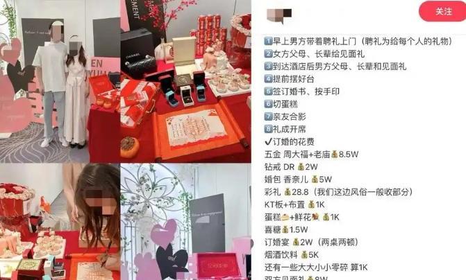 订婚仪式在年轻人圈里悄悄崛起,有人通过订婚发现男方的缺点,事先说好的40万房子首付成了20万,直接把感情消耗没了。 在网上一片不想结婚的声浪中,一个耐人寻味的现象正在现实生活里悄然蔓延——越来越多的年轻人开始热衷于举办隆重的订婚仪式。 某婚庆店老板面对镜头笑得合不拢嘴:"前几年订婚仪式一个月接不到两单,现在档期都排到三个月后了。 看了网友所晒出来的订婚花费,令人意外的是,这些订婚仪式的花费动辄数万元,丝毫不逊色于传统婚礼。 为什么年轻人开始流行订婚仪式呢?在传统习俗当中,订婚通常都不算是很正式的,也就双方家长见个面,敲定一下结婚的日期。 从网友的评论中,可以得到答案,年轻人赋予了订婚全新的功能定位,这是一场精心设计的压力测试,一场结婚前的彩排。 有网友分享,在订婚阶段发现自己的女友有严重控制倾向,果断选择终止关系。 也有网友通过订婚发现男方家的亲戚不尊重自己的父母,他家七大姑八大姨都可以对自己的父母指手画脚,气得她在订婚当天一直哭。 还有网友问订婚能不能反悔啊,男朋友觉得彩礼要高了! 订婚仪式在年轻人当中崛起,其实也从侧面上可以反映出,当代的年轻人他们对婚姻有着比老一辈人更为谨慎的态度,在没有正式结婚前,通过订婚来“扫雷”,观察对方的行为以及家庭成员,适不适自己。