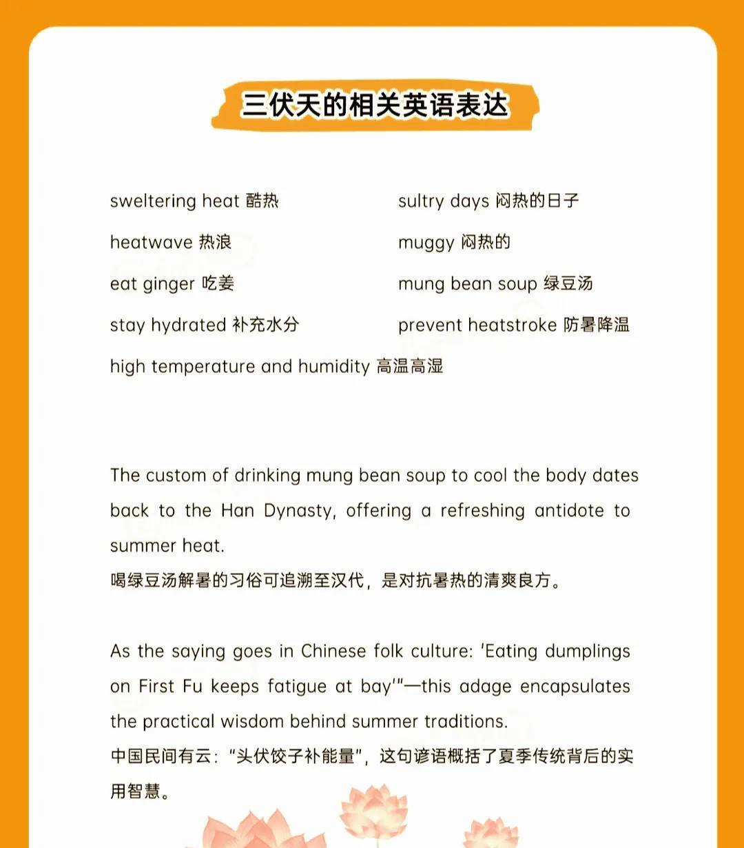 #英语学习##用英语介绍3伏天##用英语介绍中华文化# 今天我们一起试着用