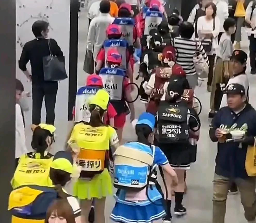 苏超赛场周边出现了卖啤酒的小妹妹,还有外国小妹,她们背着酒桶,四处游走,为球迷献上一杯杯清凉可口的啤酒。 有人说苏超已经与国际接轨,不过,卖酒小妹这个创意好像学的是日本吧。 在日本棒球赛场上,活跃着很多卖酒小妹,背着一桶酒大概能卖20多杯,然后进行补充,再一次售卖。 一场比赛下来大概能挣1万日元,约合人民币500元。 别小看这1万日元,去面馆能吃10顿。 对于这些勤工俭学的女孩子来说,也算一笔不错的收入。 当然也不是谁都能干的,还要经过筛选,只有颜值在线的小姑娘才能入选。 这可不是什么好活,由于采用跪式服务,她们的膝盖基本都处于红肿状态。 干啥都不容易。 #苏超# #苏超卖酒妹# #苏超球迷#