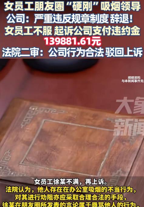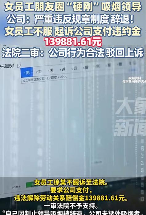 职场风暴!女员工朋友圈怒怼领导抽烟遭开除,索赔14万法院判决引热议