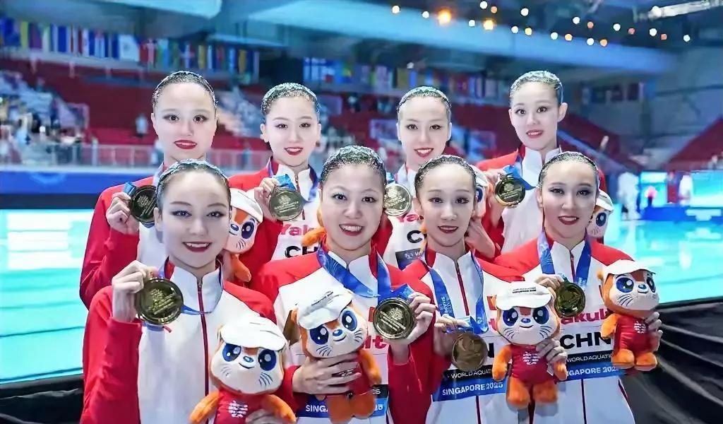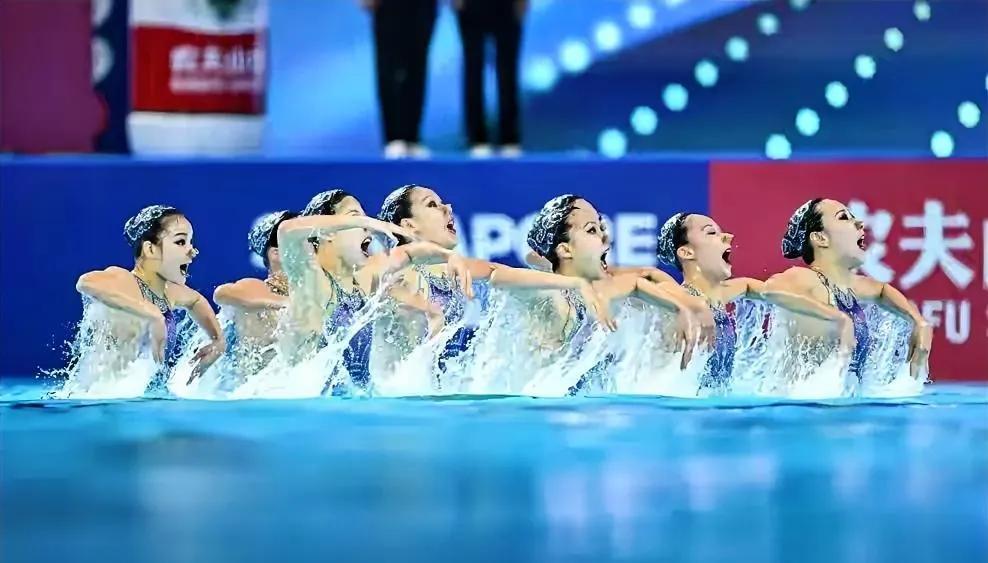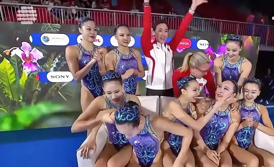 中国女子花样游泳队的姑娘们喜极而泣,泪洒赛场! 在昨晚结束的新加坡世锦赛集体自由