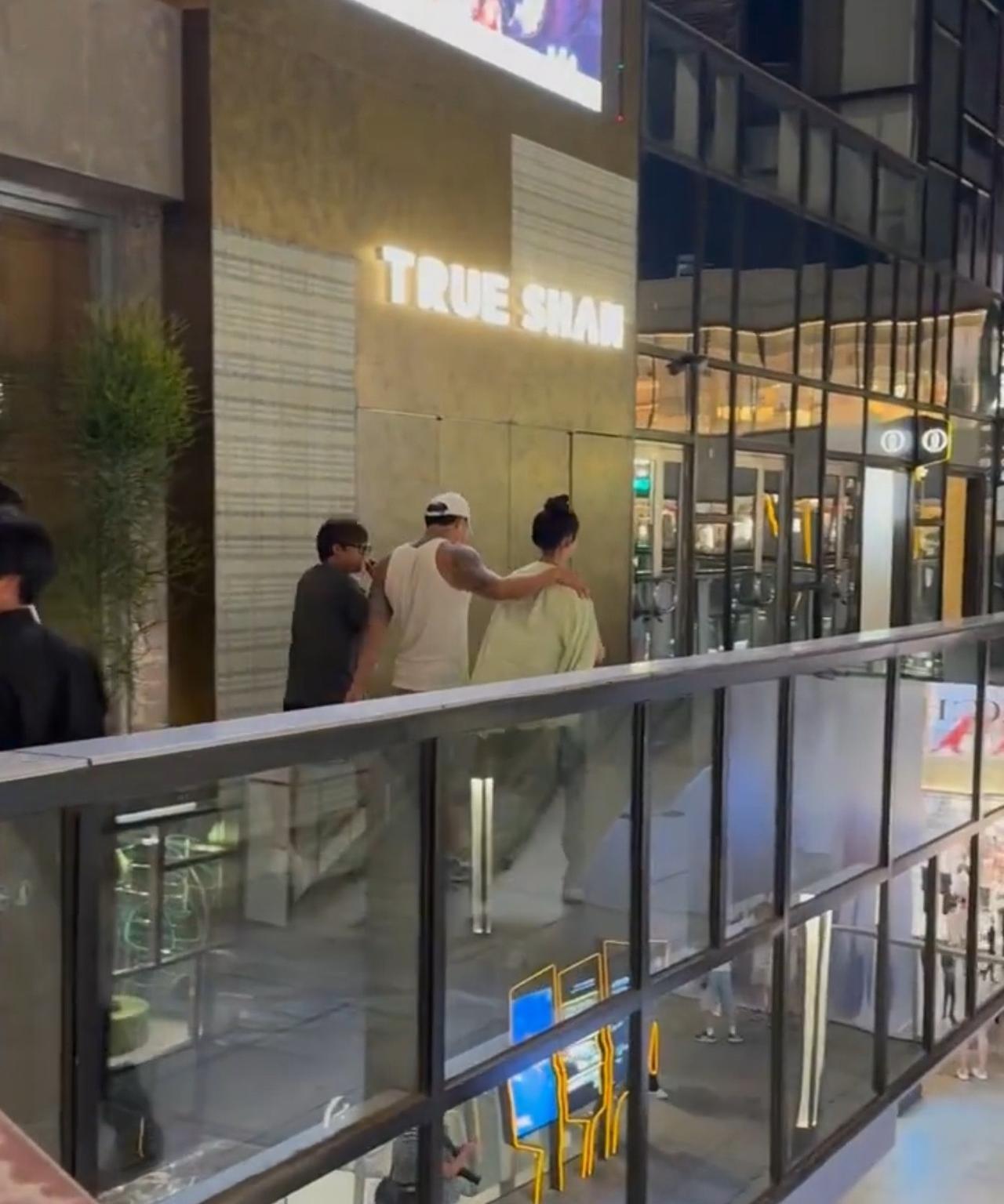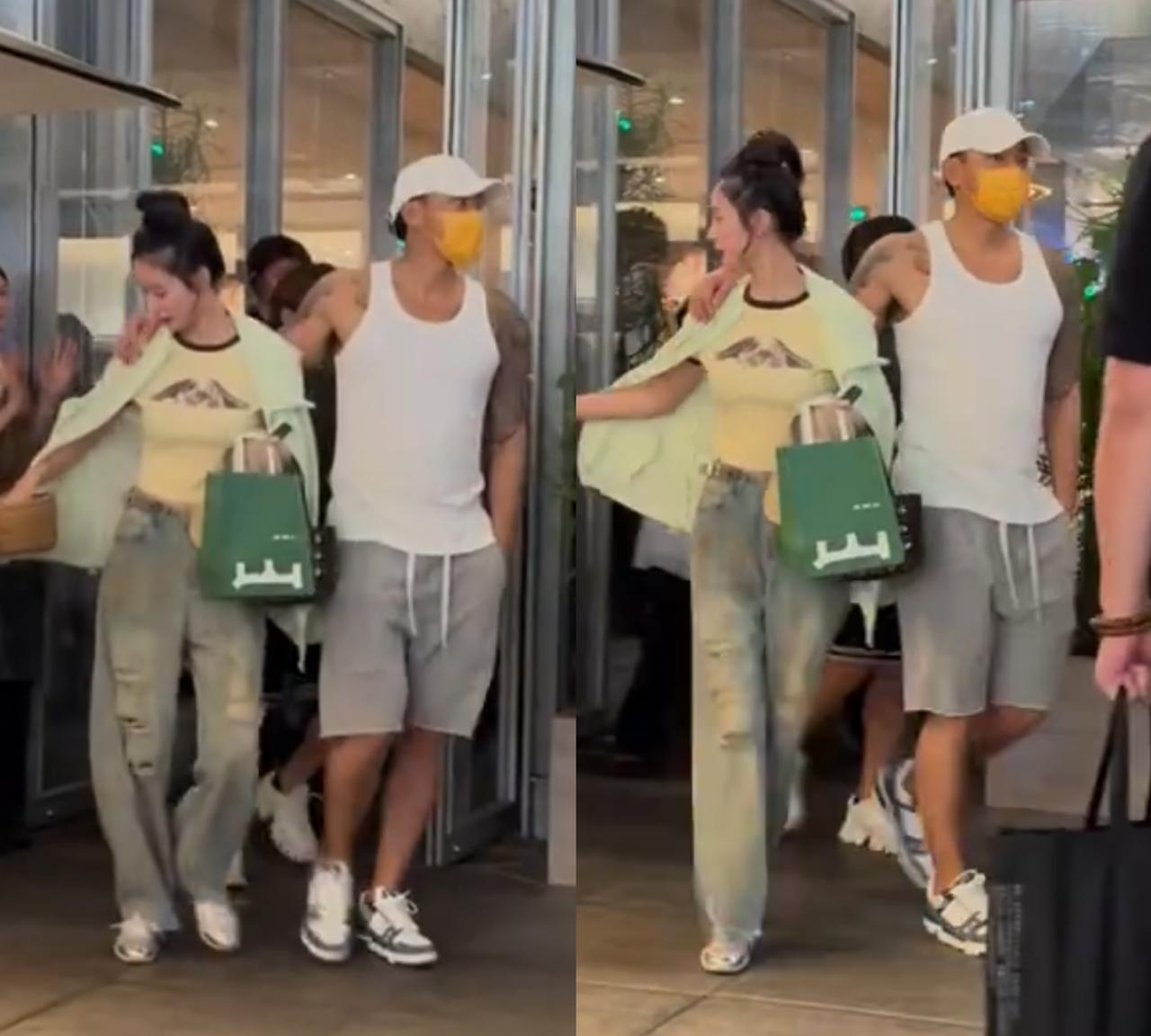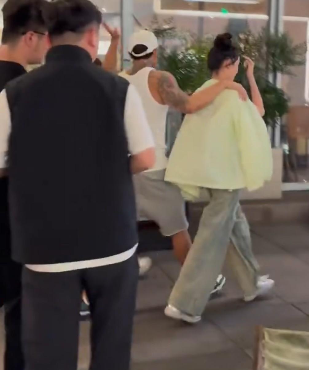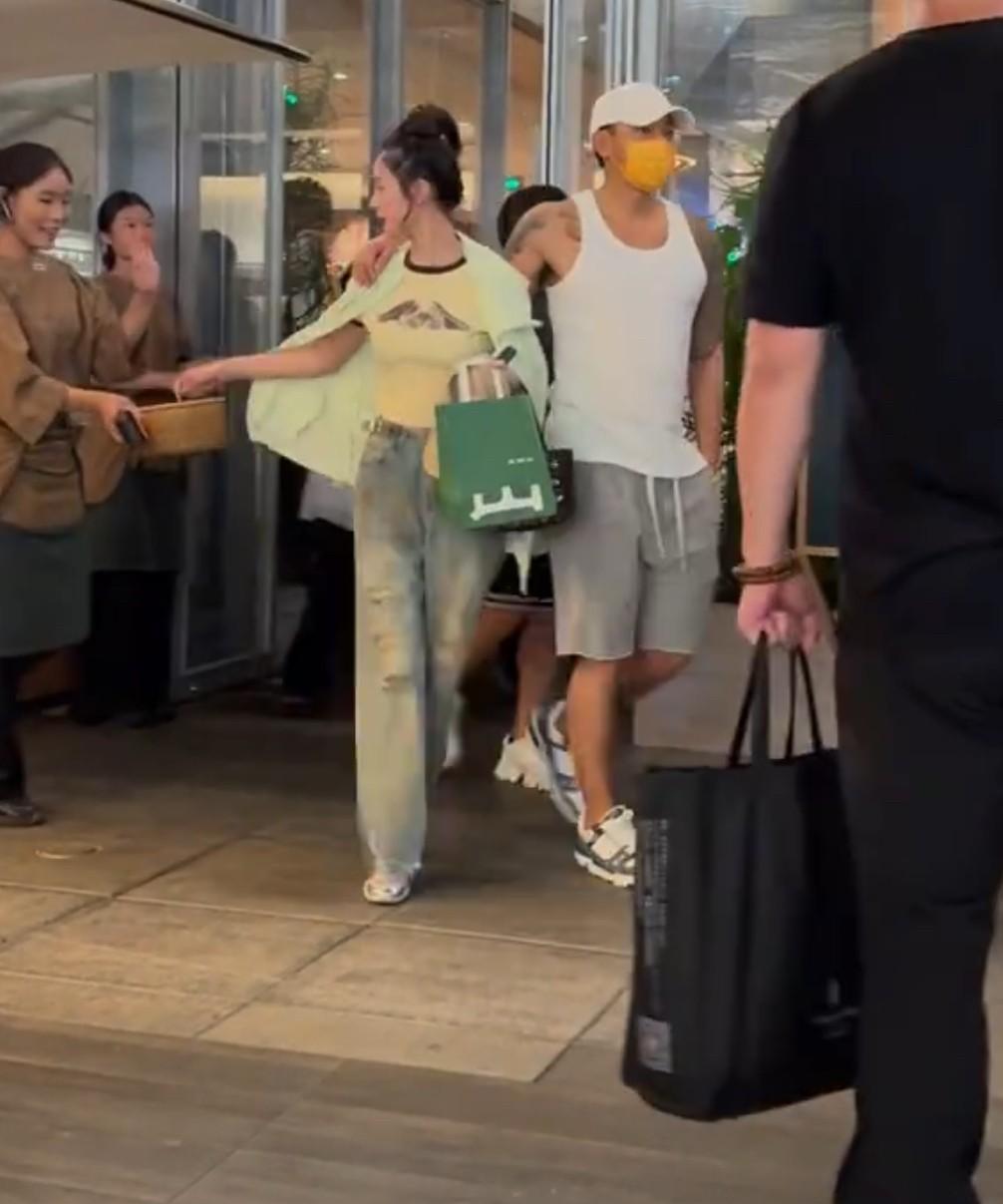 7.21三里屯好热闹,黄子韬和徐艺洋出来吃火锅,黄子韬点餐黏着徐艺洋,吃完离开也黏着徐艺洋,真的好宠妻。徐艺洋穿着灰兔子T恤,搭配破洞牛仔裤,配上德训鞋整个造型很随性。天太热,她把头发都扎到头顶了,怪可爱的。