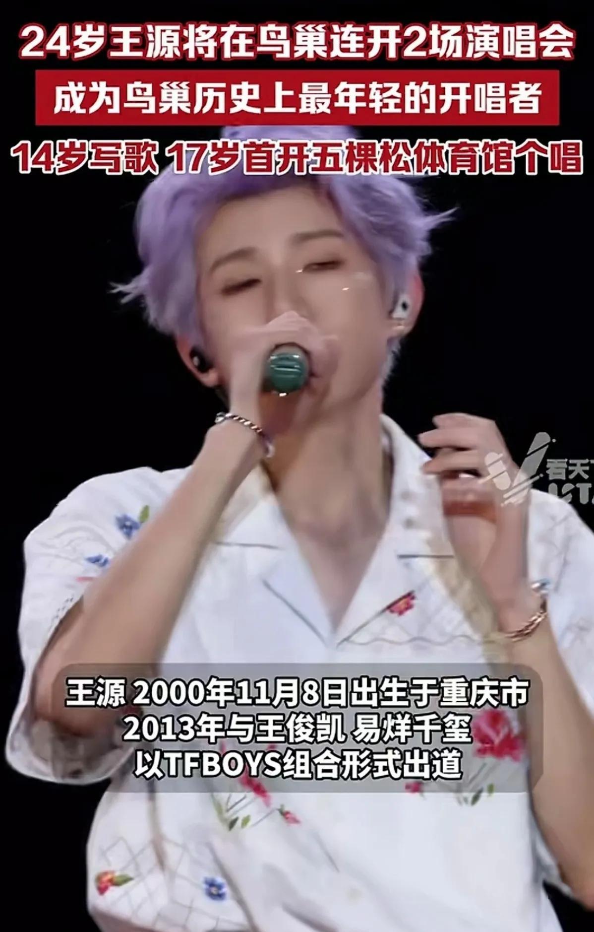 王源的演唱事业越走越高,宣布将在鸟巢连开两场演唱会。 鸟巢可不是随便一个歌手就能
