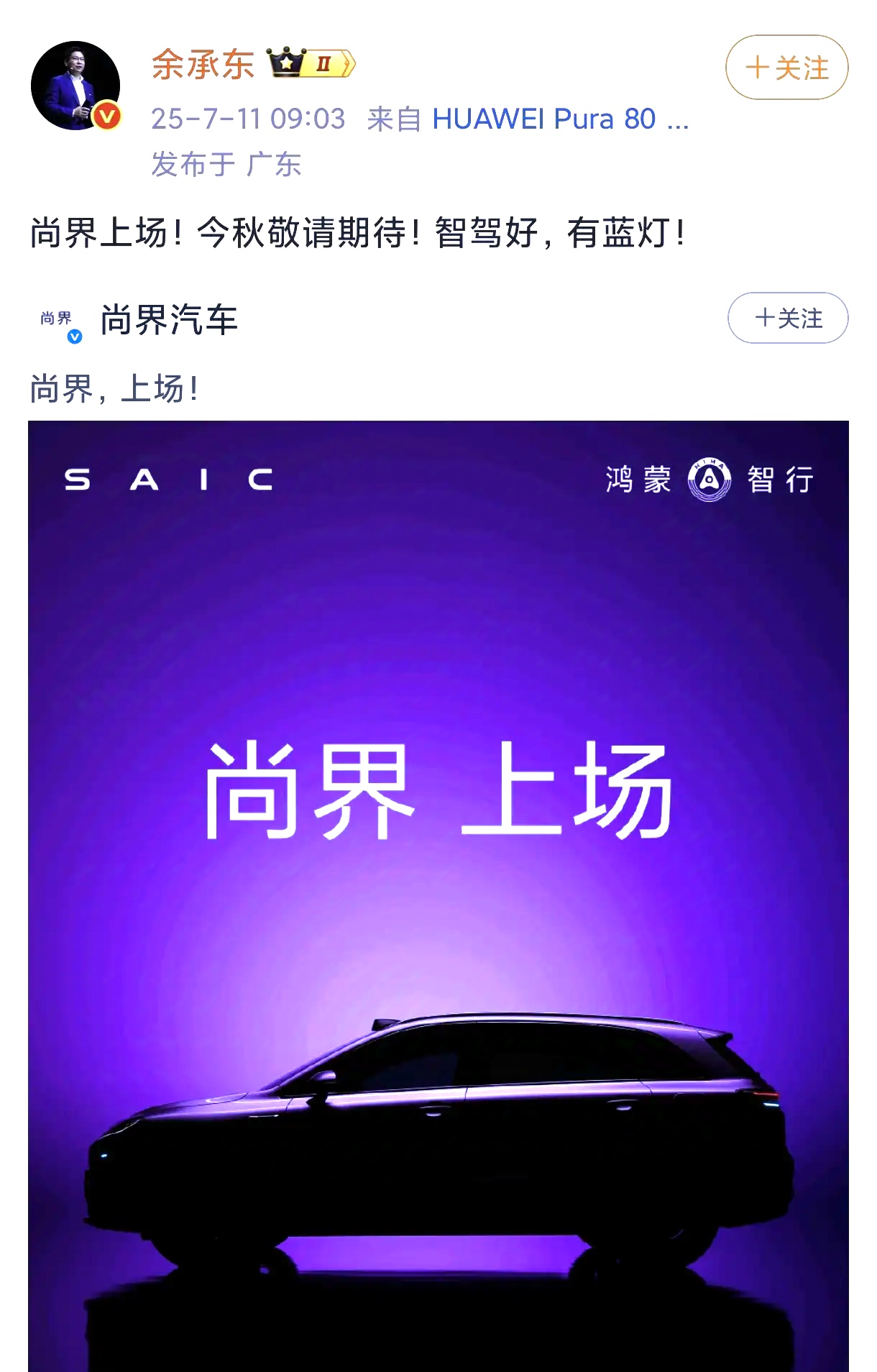 余承东宣布新车!这次睡不着的不是BBA,而是国产车企和丰田大众本田日产icon等其它车品!汽车市场已经变天,BBA三大豪华品牌已经被问界一把给超越了,问界M8和M9成为当之无愧的高端销量王炸,把bba等豪华品牌打的满地找牙。当其它车企以为华为只会和bba抢市场时,余承东宣布新成员尚界,看到这个消息,bba如释重负,但其它车企一个都笑不出来,因为尚界的定价很低,据说15万起步,其实华为和上汽这一次就是来砸场子的,所以说其它自主车企还有丰田大众本田等各种合资品牌,要说不慌那是假的。
