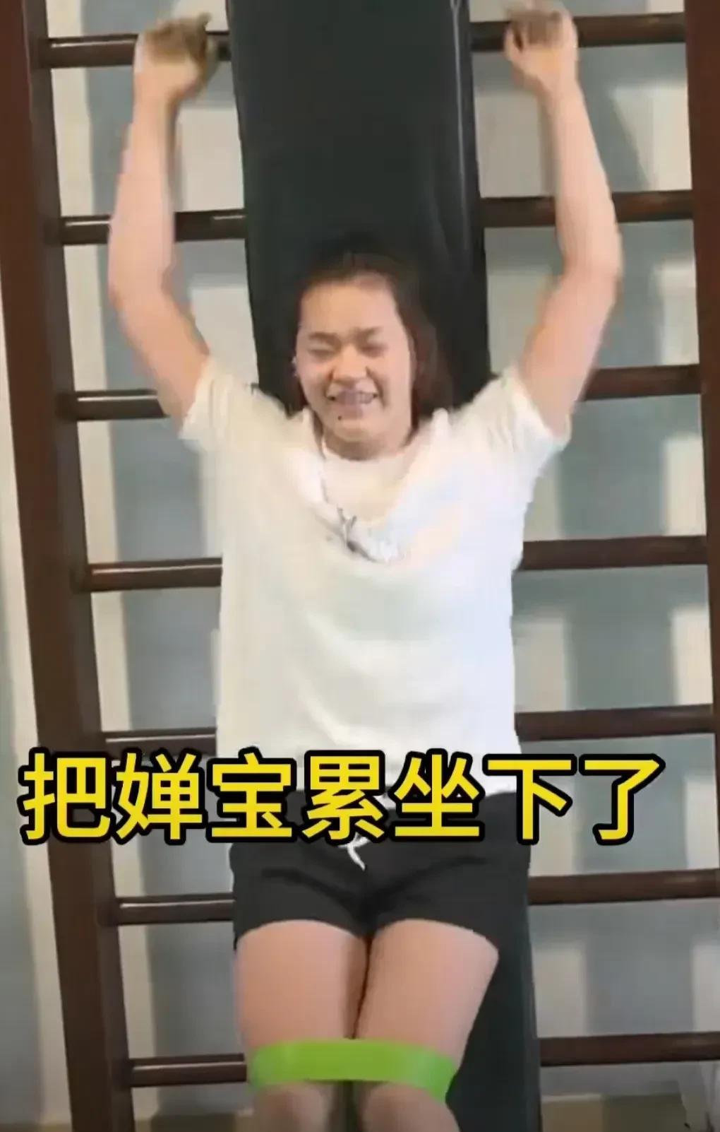 体重失控的全红婵还是急流勇退比啥都好! 图中恢复训练的全红婵做了几下拉展就体力不