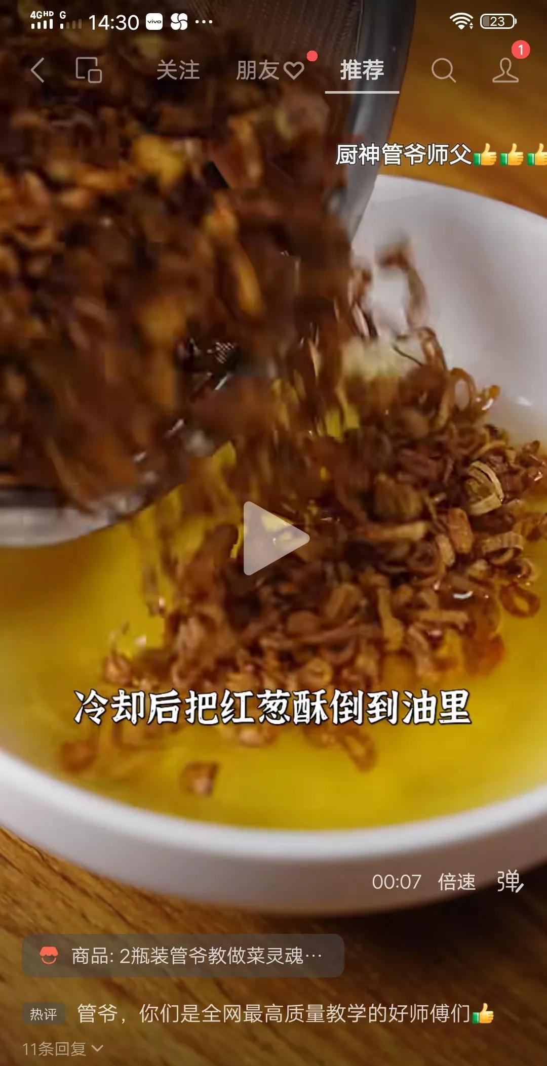 红葱油秘方 将红葱头300克去头去尾切成片,锅内倒入油300克,烧到3成热,把红葱头倒进去,慢慢熬,熬到有点变黄时,把香菜头30克香叶1克,放进去继续熬,熬到红葱全部变黄,开始分三次往里洒水,熬到没有滋啦滋啦的声音,把油过滤出来,冷却后把红葱酥再倒进油里。
