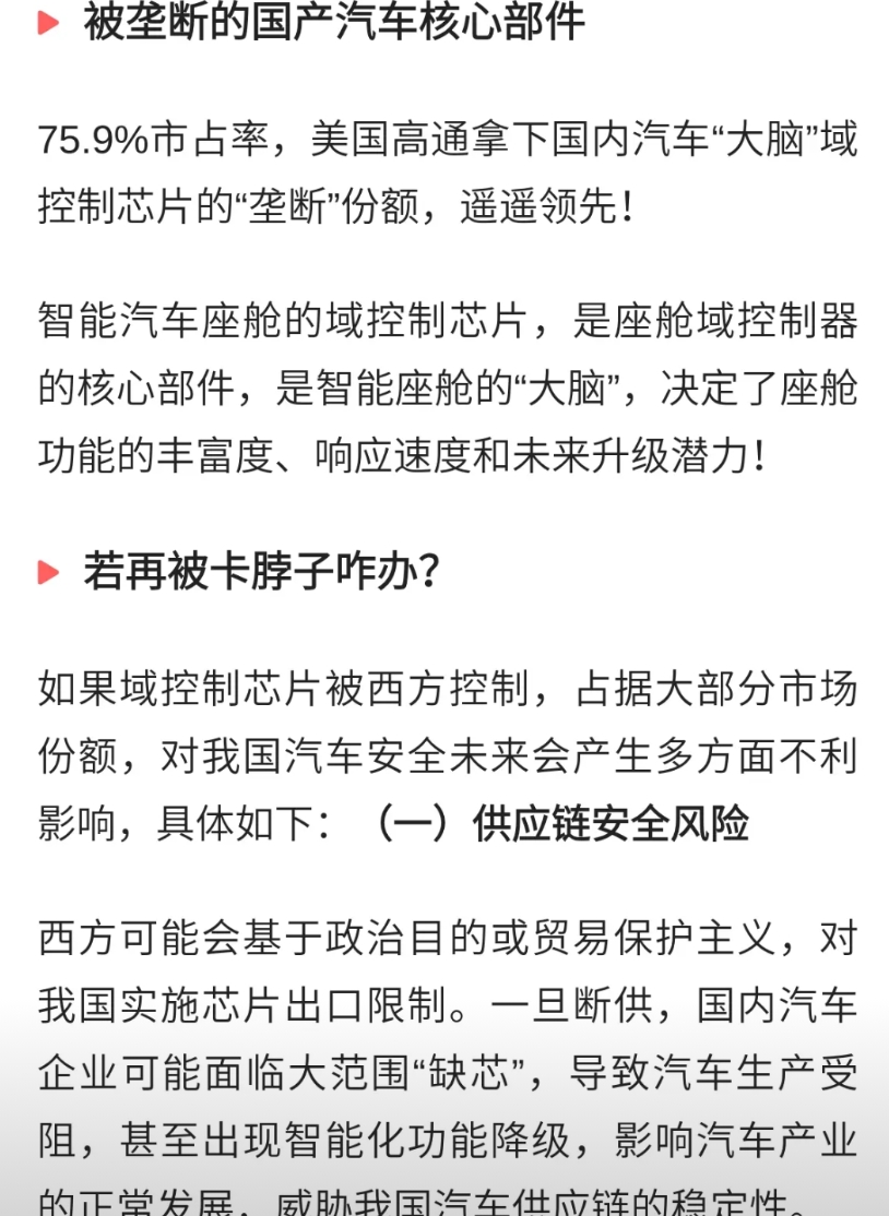 美国高通“垄断”国产汽车芯片市场,谁来支持中国芯供应链发展?
