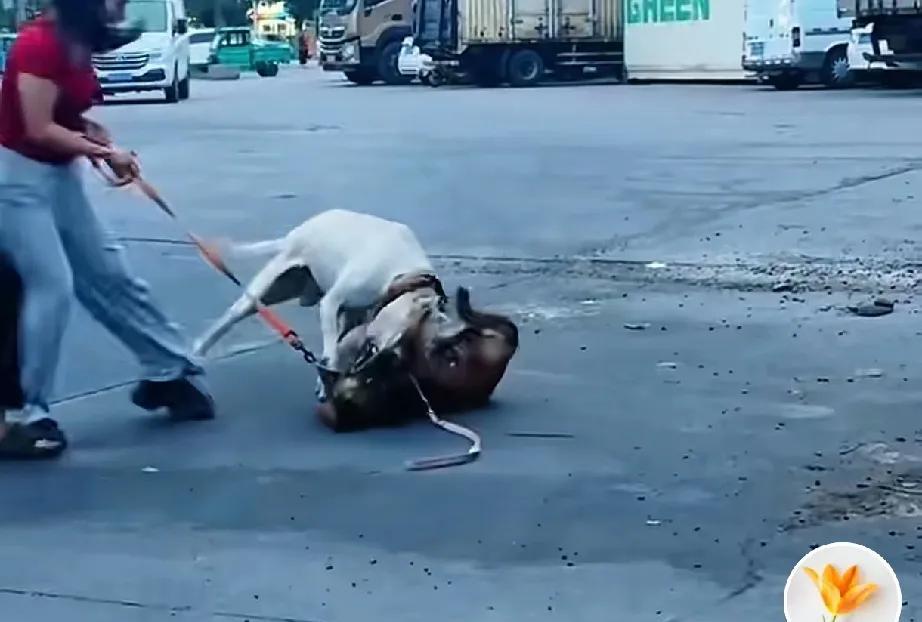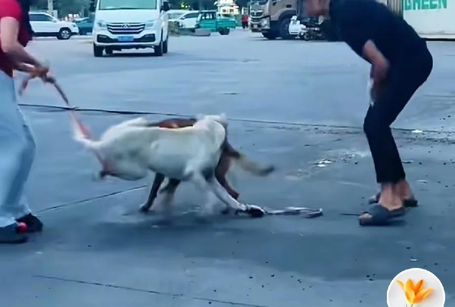 连狗都拉不住,栓绳子有毛用?两只大狗马路上见面了,好像仇人相见一样,冲上去就撕咬