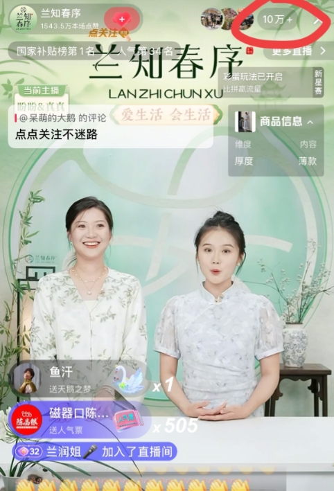 天哪,继宇辉后,与辉同行首次出现15万+观众同时在线的主播。刚刚新主播真真一出场,兰知春序就出现自开播以来,在线人数首次突破15万+,或许是担心真真首次上播紧张,特别安排和盼盼双播,突然就想起盼盼第一次直播,被吐槽说是关系户,宇辉第一时间到直播间给盼盼“撑腰”解释,今天盼盼也学着宇辉当年的样子陪着真真,这个公司真的好有爱。真真在简短地介绍自己后,就为网友送上了京韵大鼓曲艺,评论区各种刷礼物,这样的流量和在线人数别说新主播了,就是顶流大主播也是可遇不可求的,咱就是说宇辉影响力太大了,真真可以说是未播先火,从昨晚汉森提前剧透到今晚上播不足24小时,真真就火遍全网了,只能说跟对人、选对老板太重要了。