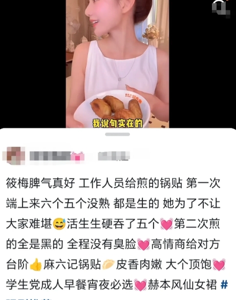 员工第一次给马筱梅端的锅贴没熟!第二次端的焦了!马筱梅愣是没发火,硬吃了五个!