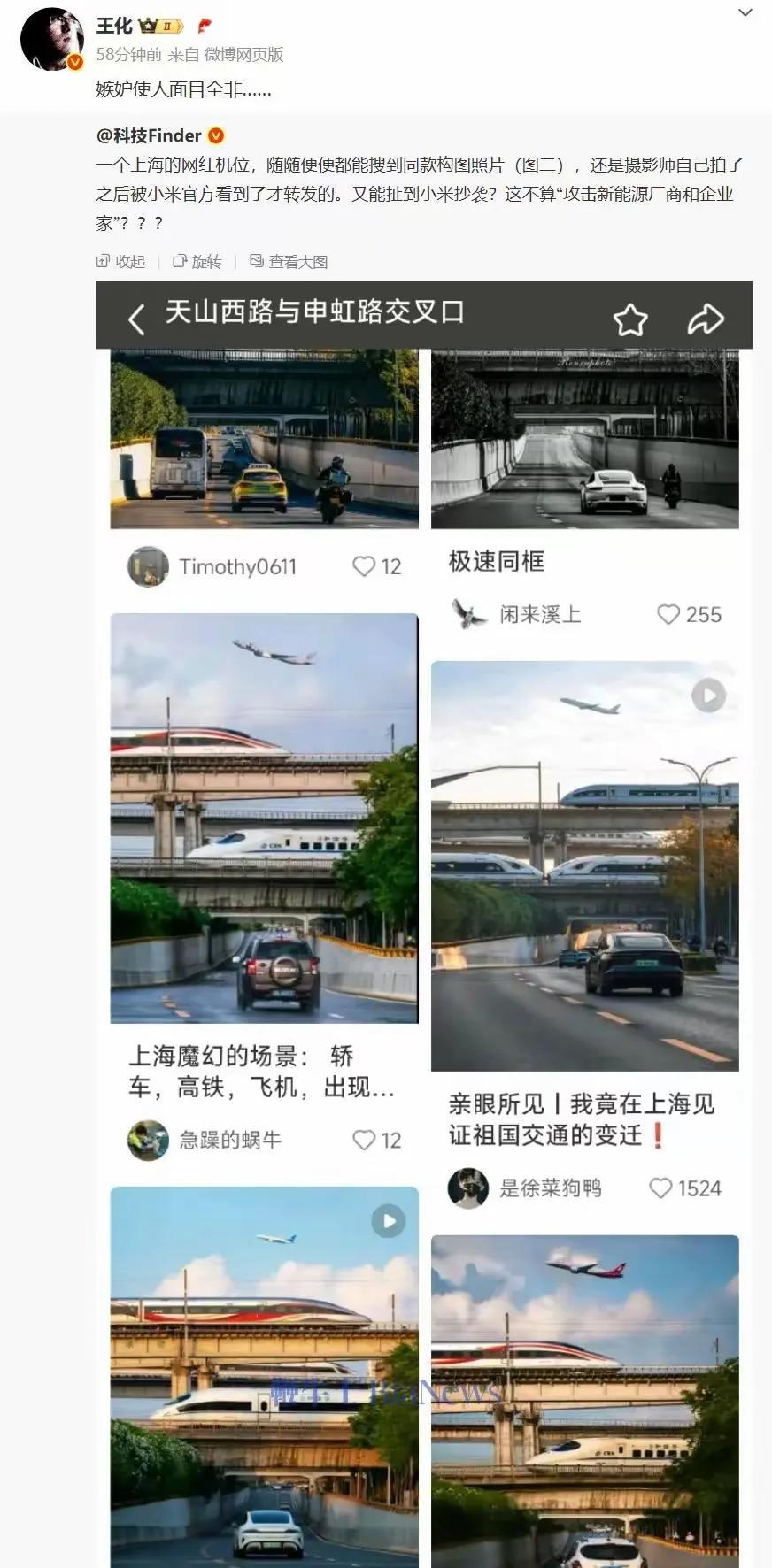 这回应让我们明白物以类聚 之前特斯拉拍了一张宣传照片,把飞机、高铁和特斯拉一起拍进去了,感觉它意思应该是速度快。 后面有车企也这样操作,估计他的宣传意图也是速度快。可这事网友不买账,可能是没创新。 这车企相关负责人回复,称“嫉妒使人面目全非。”作为一个大厂高管,这样回应也看出你的格局了。 #王化回应小米构图抄袭特斯拉#