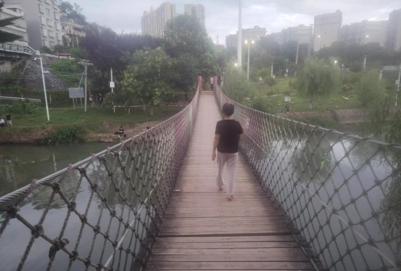今天早上,我5点半出小区围墙,穿过湘桂铁路,来到紫水湿地公园散步。 昨天永州许多地方下大雨了,明天的空气相当清爽,微风吹拂,给人以凉快的感觉。 早晨,来这里的人不多,有几个人在健身。 我在林间的卵石嵌石板路上来回走了半小时…