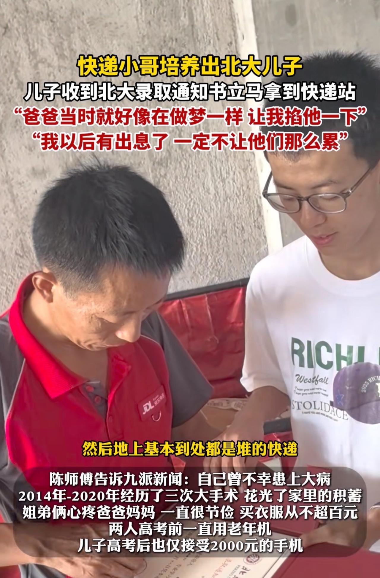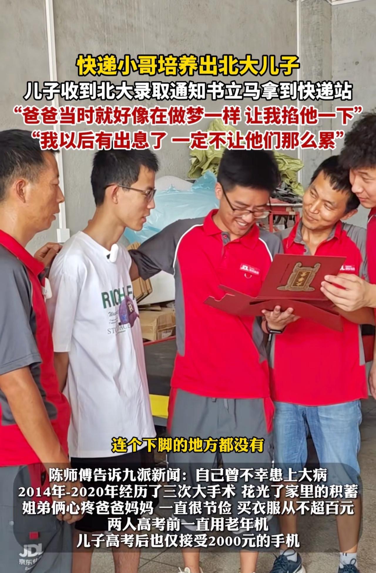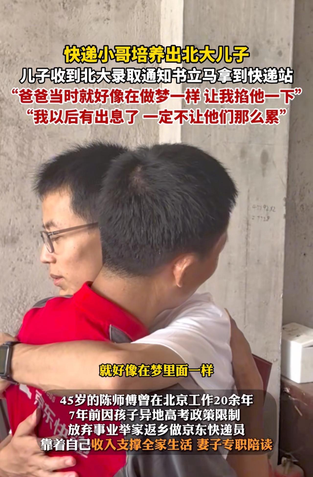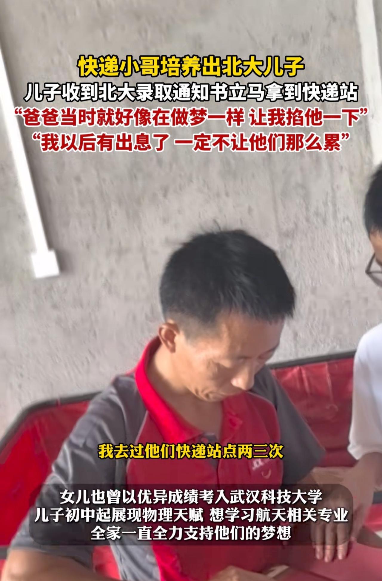 据悉,这是其老家镇上11年来首位考上清北的学子。七年前,该快递员小哥为了孩子,放弃北京事业返乡回到老家做快递员,妻子专职陪读,女儿此前以优异成绩考入武汉科技大学。 对于考上北京大学,该儿子说:“爸爸当时就好像在做梦一样,让我掐他一下。我以后有出息了,一定不让他们那么累!” 对于这位快递小哥培养出北大儿子,有网友当即感慨道,“ 同一个公司上班的一个送货同事,每天刮风下雨开三轮车送货,今年他儿子考上清华,他说他每天再辛苦都值得了!” 看这新闻,最打动人的不是669分和北大的光环,而是普通父母藏在日常里的付出。快递员放弃北京事业回乡,妻子专职陪读,一家人为孩子的未来拧成一股劲。俩娃也很争气,一个考进北大天体物理,一个上了武汉科大,这一刻再苦再累都值了。 更难得的是,孩子懂这份不易,一句“不让他们那么累”,比任何奖状都实在。其实身边这样的事不少,想起网友说的那个送货车同事,孩子考上清华,再累都觉得值。其实啊,好多普通家庭都这样,谁不是拼尽全力托举孩子? 这些故事里藏着最朴素的道理:好日子从来不是等来的,是一家人一步步挣来的。 对于这位快递小哥培养出北大儿子,大家怎么看呢?#长沙新朋友# #寻美三湘#