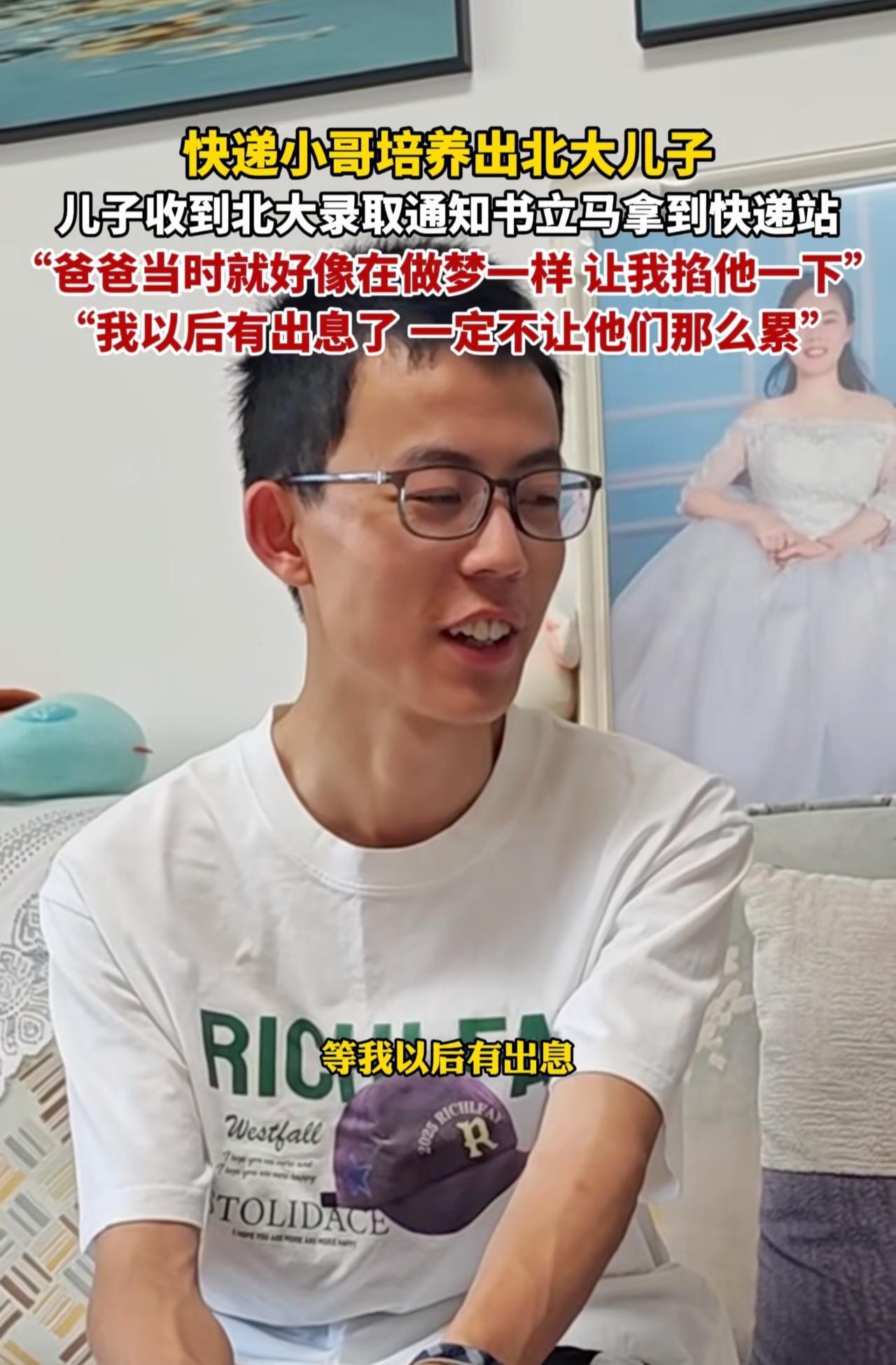 据悉,这是其老家镇上11年来首位考上清北的学子。七年前,该快递员小哥为了孩子,放