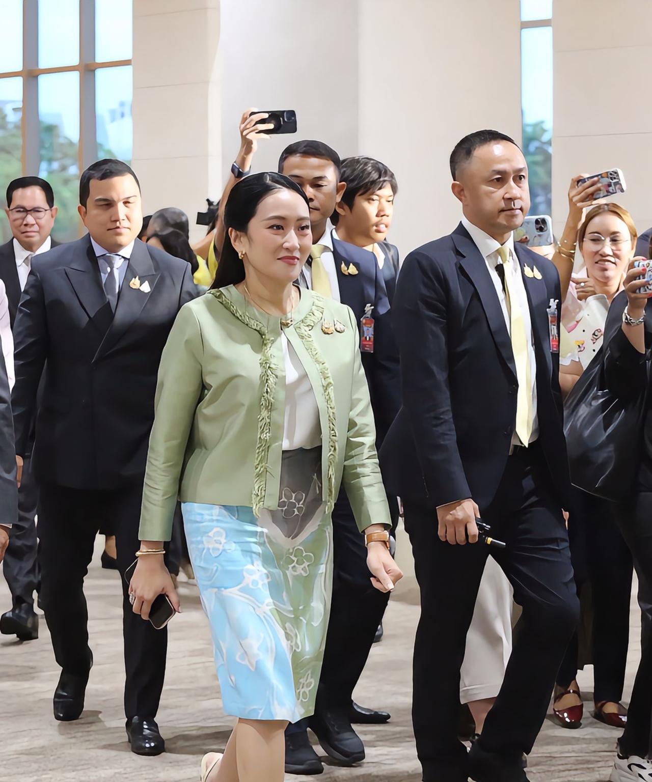 佩通坦夏季造型好美,清新脱俗笑颜如花 2025年7月21日18:00。在诗丽吉皇后国家会议中心。总理兼文化部长佩通坦,出席了泰国旅游管理局(TAT)的演讲,以促进2026年旅游市场的方向。