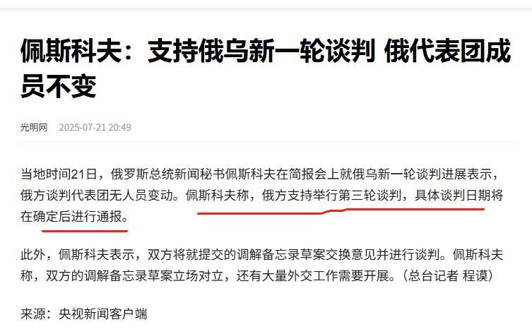 乌克兰总统泽连斯基7月21日突然宣布,俄乌第三轮谈判计划于23日在土耳其举行,这一表态较此前“暂缓谈判”的立场出现180度转弯。表面看,乌方主动释放缓和信号,实则暗含多重考量: 首先,巨大的战场压力倒逼外交突破。俄军近期在顿巴斯地区持续推进,乌军精锐损失超40%,因以伊战事停运的美援武器转运过来还需要时间。泽连斯基试图通过谈判为反攻争取时间窗口。 其次,这是美国施压下的策略调整。特朗普政府以“50天停火期限”向乌方施压,同时威胁对俄加征100%关税。泽连斯基的急转弯,既是对美政策的妥协,也是避免被盟友“边缘化”的自救。 再次,这是俄方虚实博弈的延续。尽管俄总统新闻秘书佩斯科夫称“代表团已准备就绪”,但俄方始终未确认23日日期,反而暗示谈判可能延至24-25日。这种“时间差”操作,实为俄方试探乌方底线的战术——若乌方急于求和,可能在领土、安全保障等核心议题上让步。 最后,需要关注深层矛盾,双方提交的备忘录草案“立场截然相反”,乌方坚持“先停火后谈领土”,俄方则要求承认乌东四州主权。土耳其斡旋的“伊斯坦布尔模式”虽被寄予厚望,但若无法弥合根本分歧,本轮谈判恐难逃“换俘协议”式的有限成果。