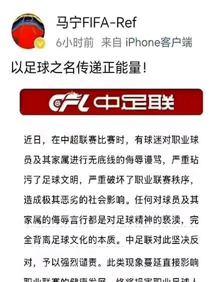 马宁力挺中足联最好的方式是对当值裁判麦麦提江的现场判罚作一个详细说明!作为国际裁判的马宁应该以专业角度对球迷辱骂韦世豪事情的起因、发展经过、判罚标准、判罚结果、判罚是否合理,当值裁判麦麦提江出示的第一张黄牌是否合理,是否起了推波助澜助长骂人歪风邪气助长骂人球迷嚣张气焰的作用,中足联的处罚得到了大家一致支持,作为国际裁判的马宁,最好的支持就是就事件中裁判的判罚和应该担负的责任以专业的角度作一个详细说明。