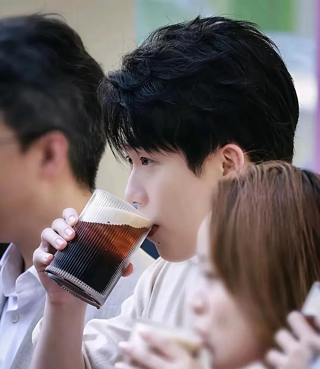 咖啡沫沫沾到了嘴唇上,真的太萌了[爱慕][比心][比心]
