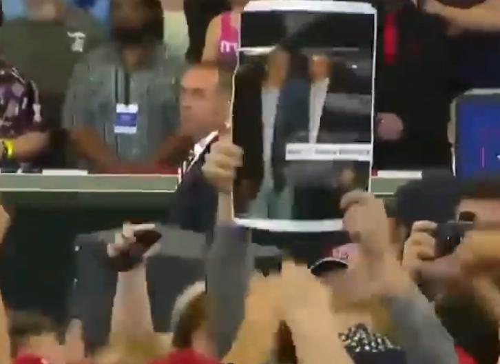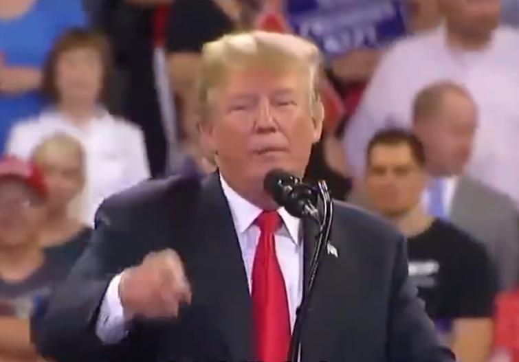 特朗普在集会上兴致勃勃地发表演讲,台下有人举着他和爱泼斯坦的合照。 这可把懂王气