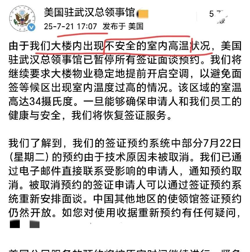 快讯!USA驻武汉总领馆,罕见地连续几天的高温“抱怨”,令国人觉得,他们真是带着