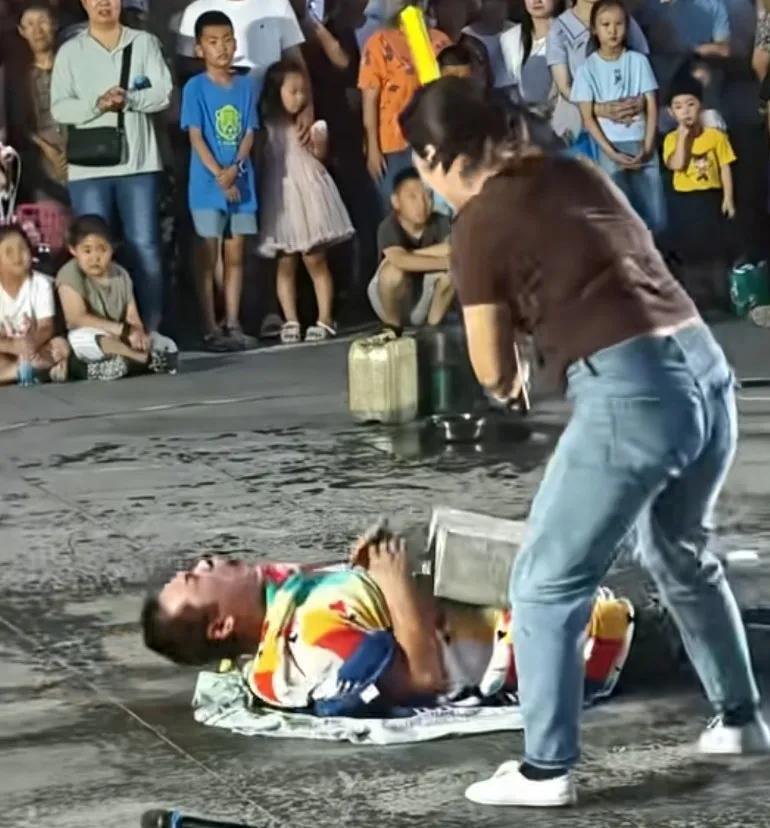 胸口碎大石失误了!一锤子锤在胸口上,都是在努力活着 听声音这么清脆,倒像是金属的碰撞声,虽说有可能金属片保护,那是真的挨锤。如果没防护这一锤下去死定了。不管有没有钢板,说实话,都容易受伤。这种挣钱真不容易,一般看到这种街头卖艺的多少都给点。比很多跪下面前一张文案要钱的强多了 小时候看这种杂技,爸爸把儿子胳膊卸掉换,再接回去,妈妈心疼,生气,一直印象很深,当时好心疼好心酸,大人说假的我一直都没信 直到长大,那是谋生的一种表演啊……