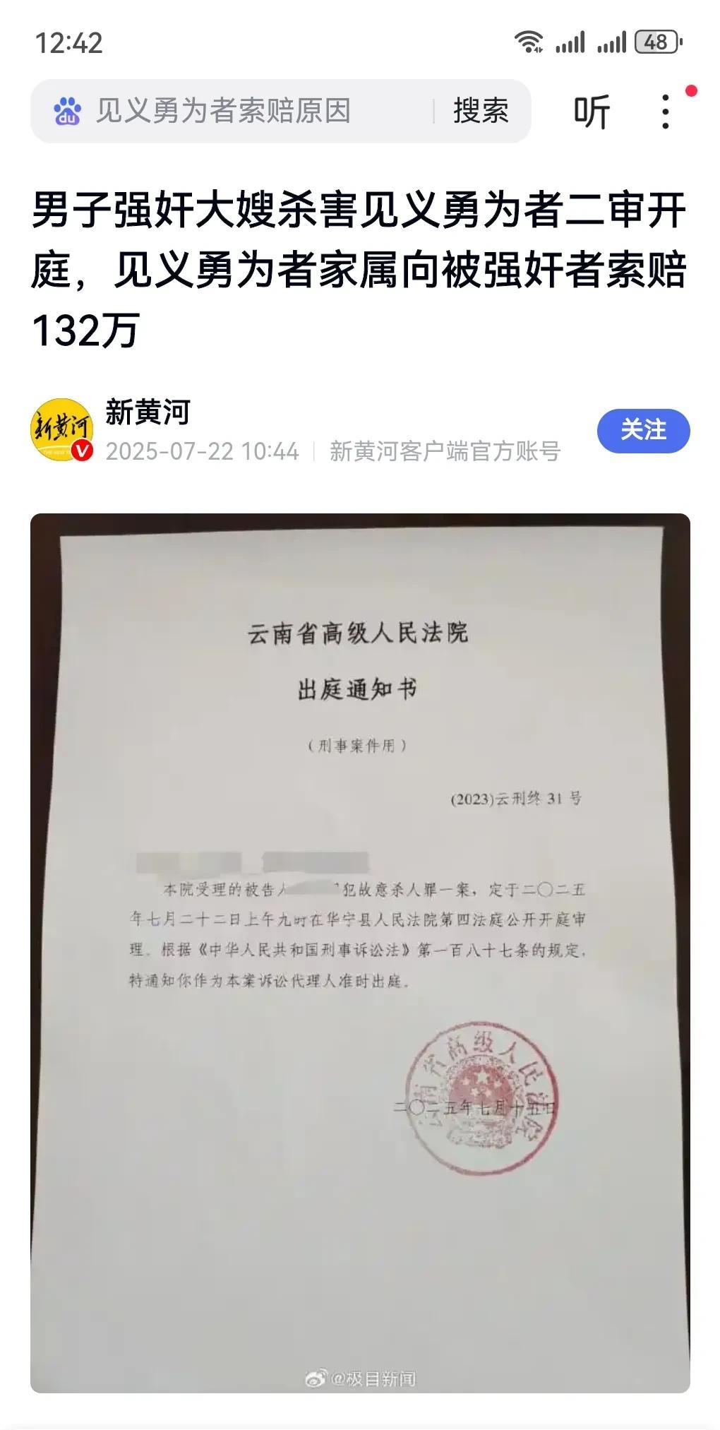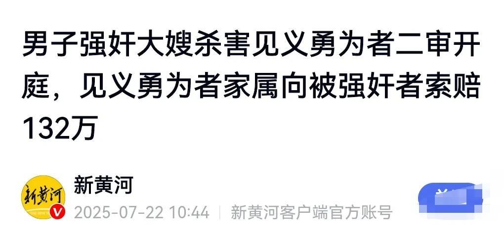 多年前,一男子欲杀害嫂嫂,一名见义勇为者被男子杀害。 7月22日(发布),见义勇为者家属向被强奸人索赔132万。 我认为这个数额太大了,法院肯定是不会支持的。 见义勇为者死了,这也不是被强奸人愿意看到的。 见义勇为是一种精神。 这种巨额索赔应该不会得到法院的肯定。