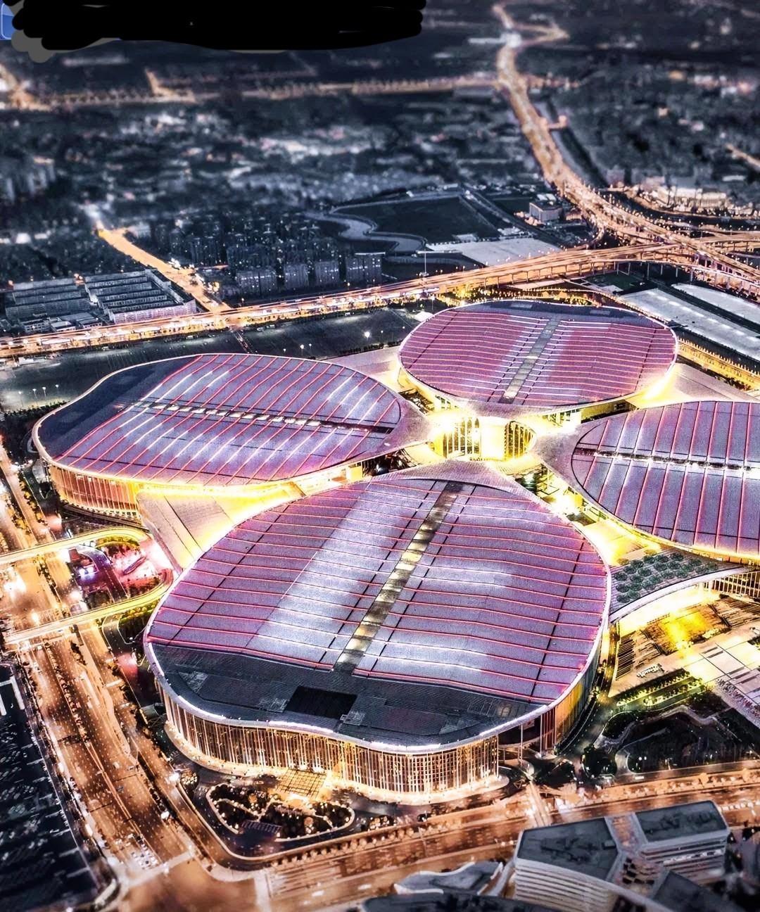 魔都“四叶草”·航拍全球最大的单体会展建筑 国家会展中心(上海)是中国国际进口博览会(简称“进博会”)的举办场馆,因其形象取自幸运之草“四叶草”而有着美好的喻义。 “四叶草”项目总建筑面积147万m2,是目前世界上面积最大的建筑单体和会展综合体。(“四叶草”夜景照片航拍于上海进博会期间)
