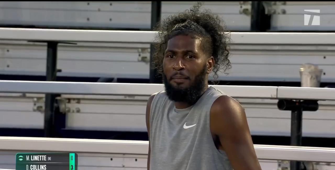 这年头疯子太多了,柯林斯今天比赛中遇到一位男球迷骚扰。这人坐在她身后,听起来像是在给她加油鼓劲,但是使用的言辞并不友好,这让柯林斯感到非常困扰。最终赛事派出保安把这名观众赶出了场外,一旁的柯林斯神色非常不好
