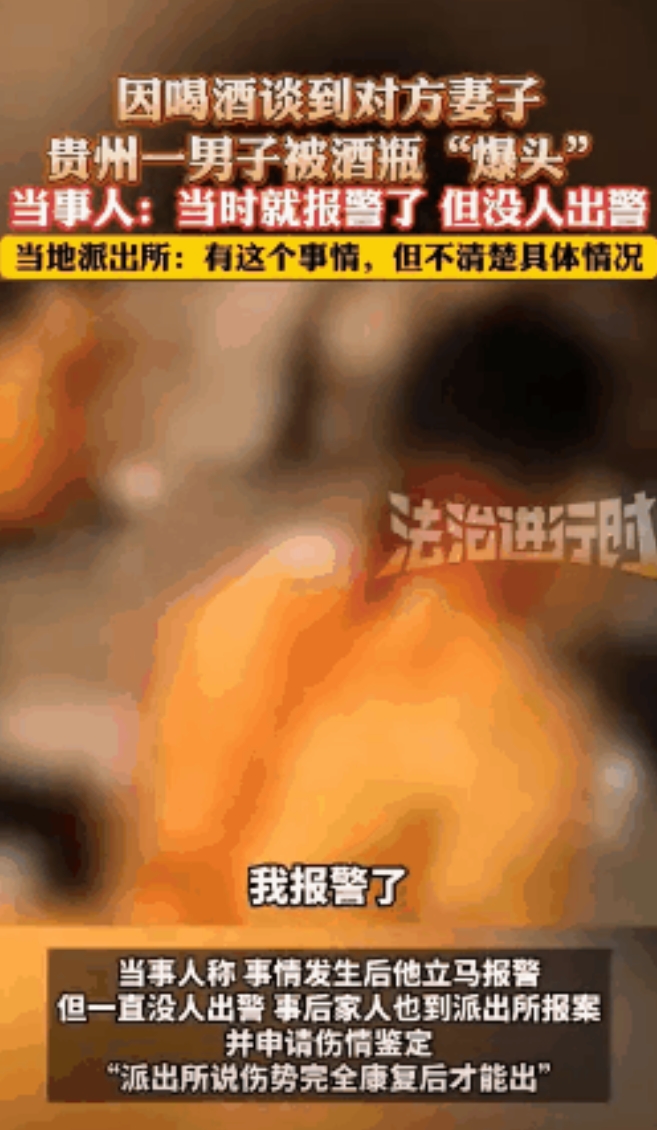 贵州毕节,一男子与朋友聚餐期间,朋友提到妻子在云南拔葱。男子立即插了一嘴,说有好兄弟也在那拔葱。万万没想到,朋友听了以后竟直接一酒瓶子砸在男子头上。男子气愤地报了警,可民警却迟迟未来。之后男子去做伤情鉴定,却被告知要等伤势完全康复才能做。 根据7月20日法治进行时的报道,正在饭馆吃饭的几人,由于是许久未见的好友,他们几人便坐在饭店内,聊着自己最近的生活,喝着酒诉说着最近遭遇的烦心事。 随着时间的流逝,几人也喝的差不多了,便开始聊起了家长,随即张先生(化名)便和好友们聊起了他们家的情况,说着自己老婆,为了挣钱跟着她同乡的几个好友,前往了油腻男那边拔葱挣钱了! 这时候李先生(化名)听到自己好友的老婆前去云南拔葱挣钱养家,突然间想到,自己有两个朋友也在云南那边干着拔葱的活,好像在那边是一个小领班。 随即他便告诉张先生,自己的好友在那边也是干着同样的活,询问嫂子是在云南那拔葱,到时候问问兄弟,说不定嫂子和那两个朋友碰见过呢! 然而李先生的话音刚落,他的好友张先生不知怎么的,直接拿起了桌子上的啤酒瓶砸到了李先生的头上,这时候张先生还不解气,甚至还要继续打闹,同桌的其他好友连忙上前进行阻拦。 转眼间被砸到头部的李先生,脑袋上流淌着血,自己也不知道为什么,好友竟然如此对待自己,他坐在凳子上也非常懵,然而他们二人随即便发生了争吵,二人各执一词,借着酒意互不相让。 被打的李先生直接选择了报警处理,并且说明了详细的事发地,但是过了许久的时间,都不见派出所的民警到达现场,无奈之下,李先生只能先前往医院进行治疗,因为头上的血一直止不住的往下流。 来到医院后,经过医生的检查,李先生的头部被缝了二十多针,包括肩膀上也缝了七针,然而警方还是没有联系李先生,随即他便又一次的拨打了报警电话。 这时候附近的派出所连忙告知李先生,刚才是因为他们派出所出警警力调配等特殊原因,没有办法第一时间赶到现场,希望李先生能够见谅! 并且李先生想要鉴定一下伤情,因为他咽不下这口气,想要让张先生得到相应的惩罚,然而鉴定伤情的工作人员却表示,必须得等到伤势完全康复,最终查看是否留下后遗症,或者别的病情后,在做出判定! 随即这件事很快被曝光在了网上,事件一经曝光,在网上迅速地,引起了众多网友的热议: 有的网友称道:“伤情鉴定的处置程序没问题,问题是警察接警后没及时处警!有更紧急的情况,也应该告知报警人或及时公之于众!” 还有的网友说道:“你说朋友也在那拔葱,说不定碰到过,我感觉砸你是轻的,你说这话是什么意思,人家老婆出轨与其它男人在外苟合,这不就是你的意思吗!” 那么,对于这件事,大家有什么看法? 信源:法治进行时