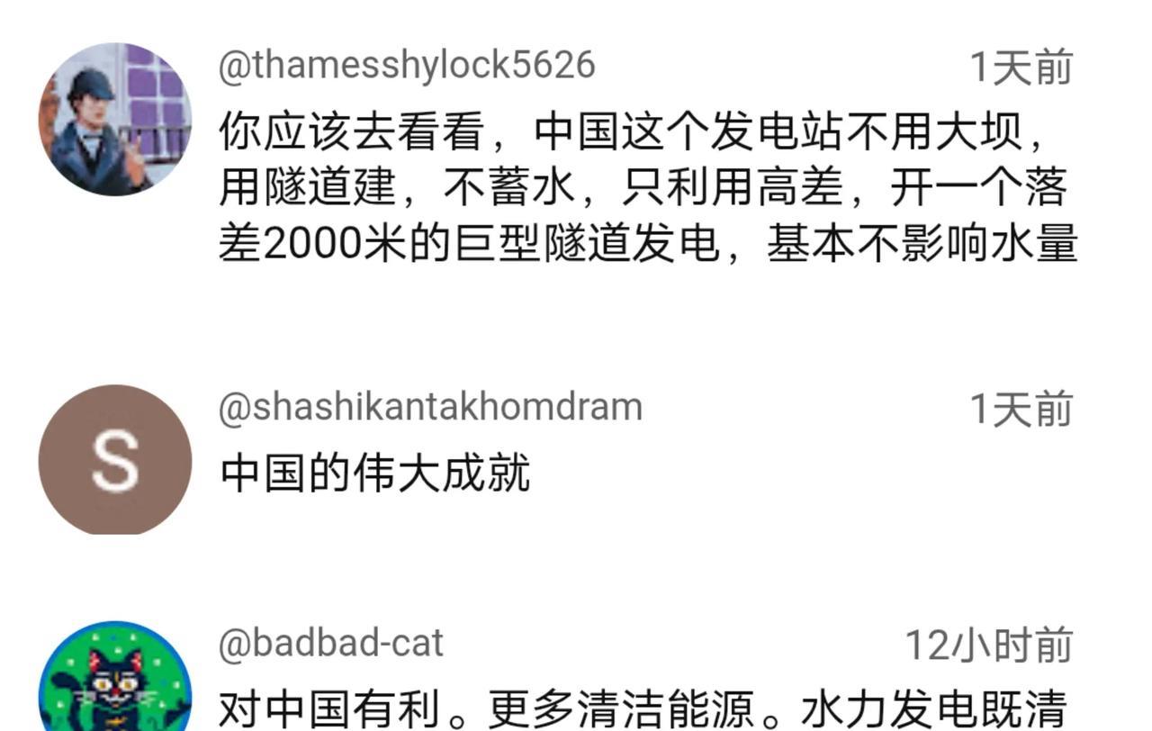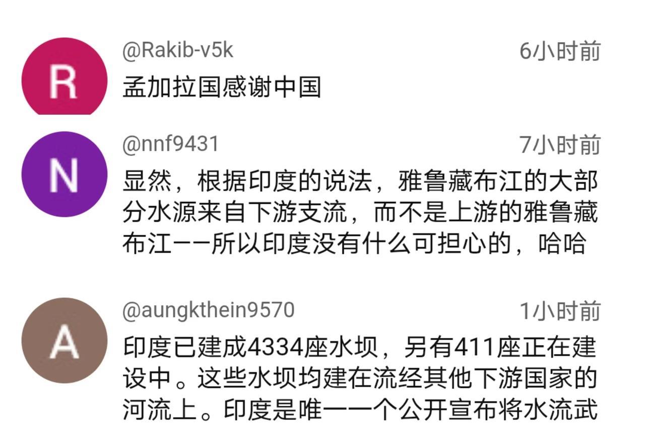 看不下去!国外网友纷纷替我们打抱不平。 雅鲁藏布江大坝开工后,印度媒体坐不住了,把一项惠及我国及周边邻国的工程,说成了掣肘印度的工具。面对印媒不友好报道,国外网友进行了反驳,他们意思非常明确,就想告诉对方不要胡说。 印度缺电、孟加拉和缅甸更缺电。一旦该工程完工,除了向国内输送电力外,三国也将跟着受益。所以说,印度应该感到庆幸,而不是无中生有…